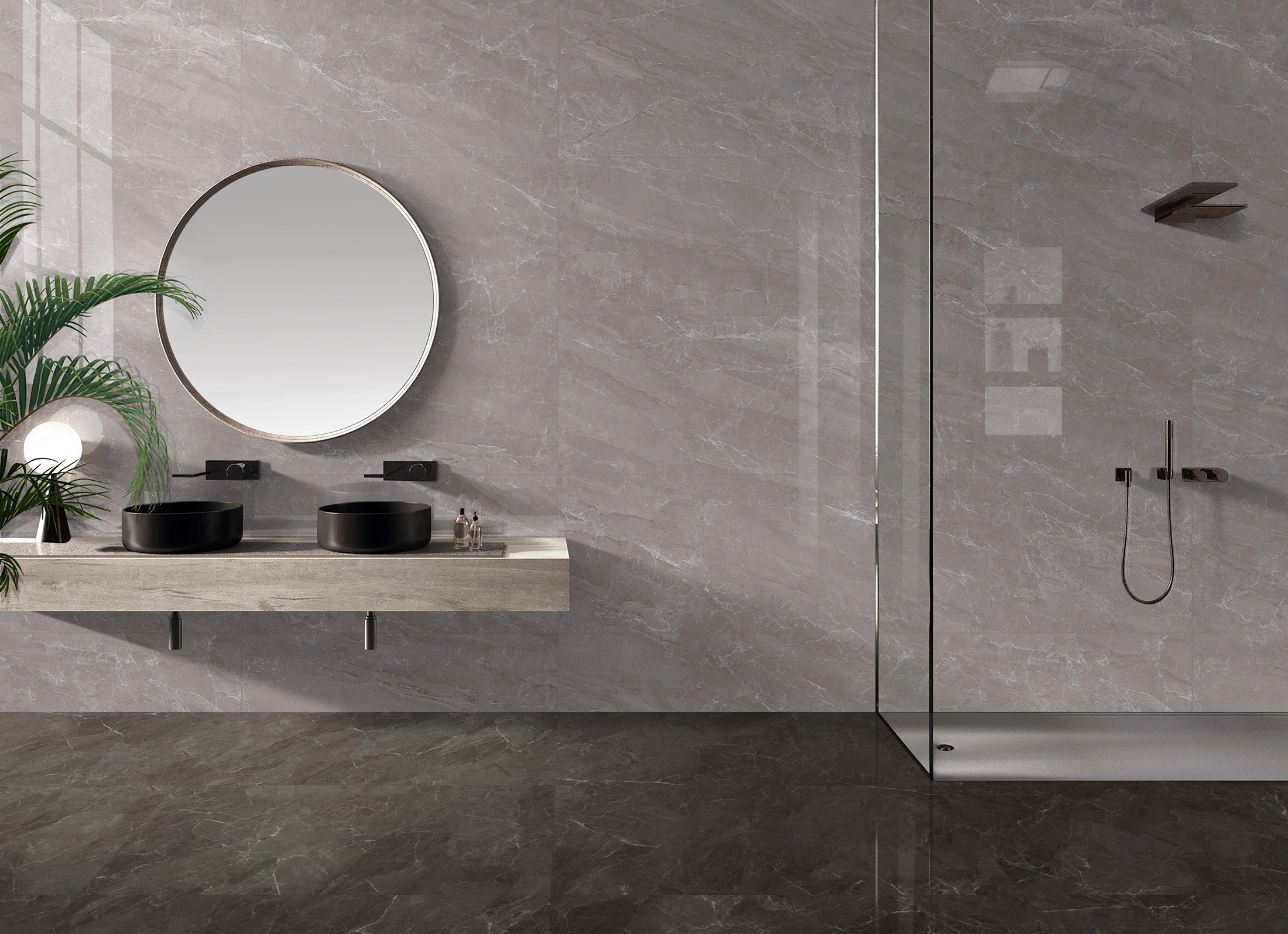 Dal pavimento effetto resina alla doccia con illuminazione integrata, dal lavabo d’appoggio alla rubinetteria, ogni elemento viene selezionato insieme al cliente per dare vita a un ambiente unico, coerente con il suo stile e le sue abitudini.